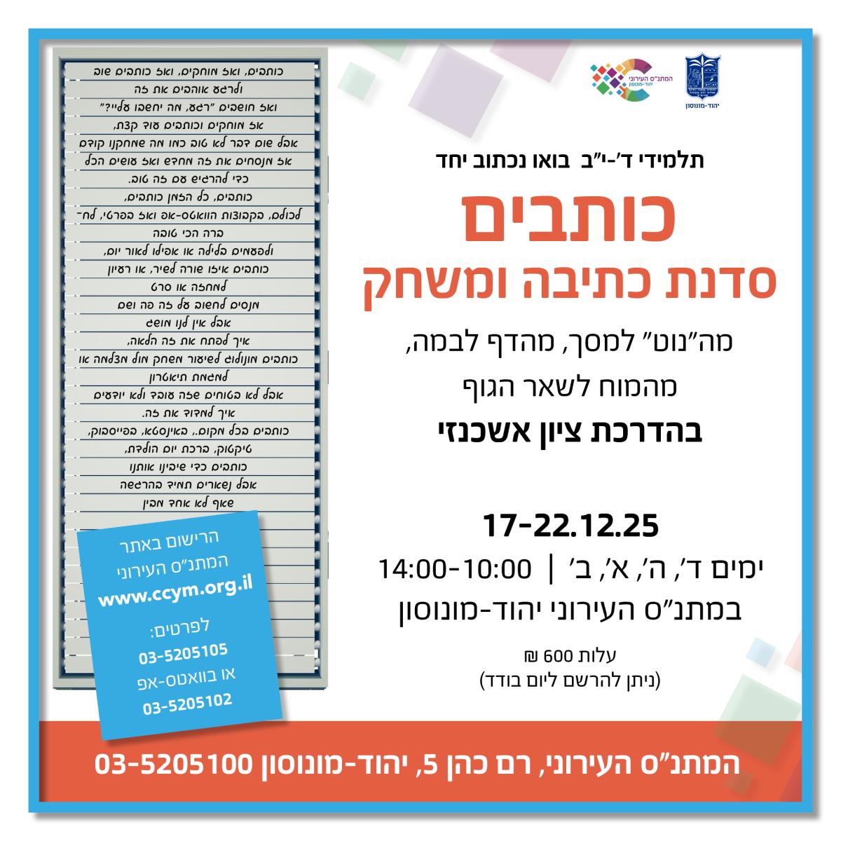 קייטנה 3 שבועות - בה"ס יהודה הלוי